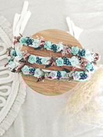 Halo nouveau né bohème ton écru et peche en fleurs séchées.
