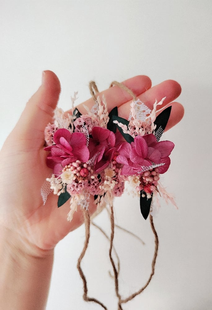 Headband dans les tons fushia et rose pale, doux sur corde. Parfait pour vos shootings newborn ou sitter. S'adapte à tous les tours de tête.