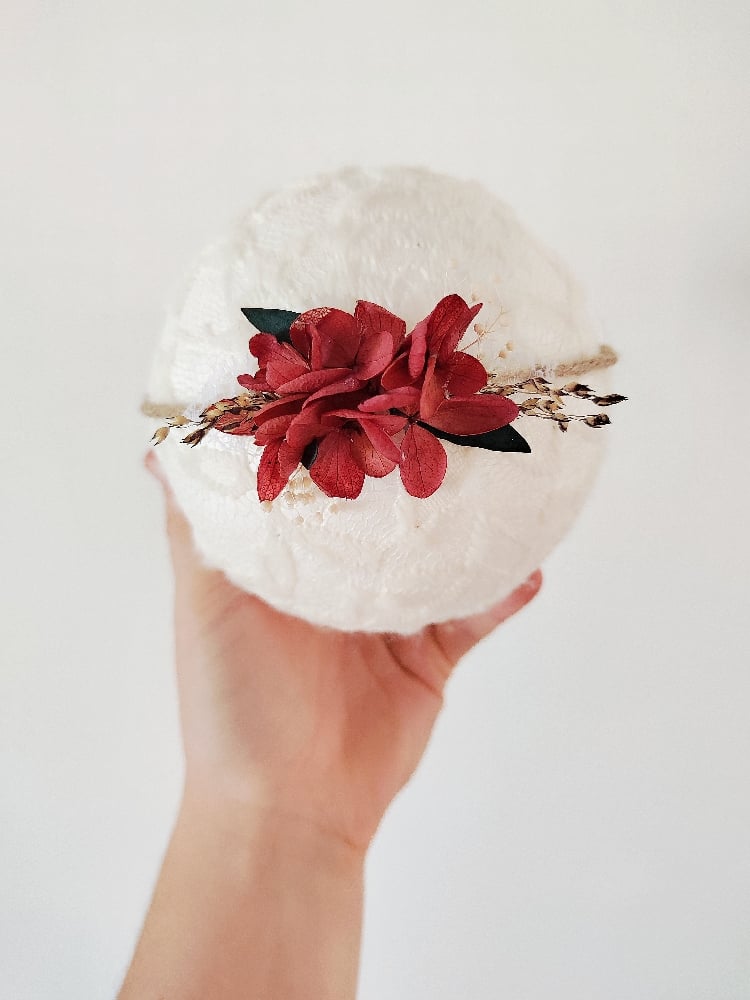 Headband dans les tons rouge Noël, doux sur corde. Parfait pour vos shootings newborn ou sitter. S'adapte à tous les tours de tête.