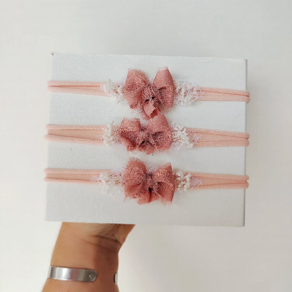 Headband dans les tons pêche, doux et extensible. Parfait pour vos shootings newborn ou sitter. S'adapte à tous les tours de tête.