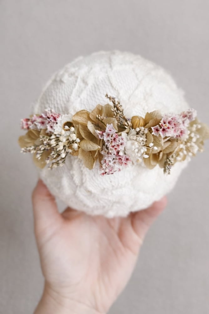 Mini halo de 10cm de décoration environ. Parfait pour vos shootings newborn ou sitter. S'adapte à tous les tours de tête.